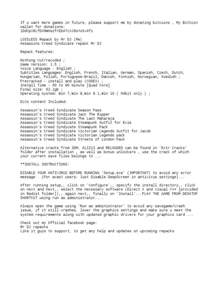 In the heart of the industrial revolution, lead your underworld organization and grow your influence to fight those who exploit the less privileged in the name of progress as jacob frye, a young and reckless assassin , use your. If you want to play in your language, but with english voiceovers, install the game with english files and then change the ui language. Assassin's creed syndicate full game for pc, ★rating: Is it possible to download language patch with will introduce new subtitles, for e.g.